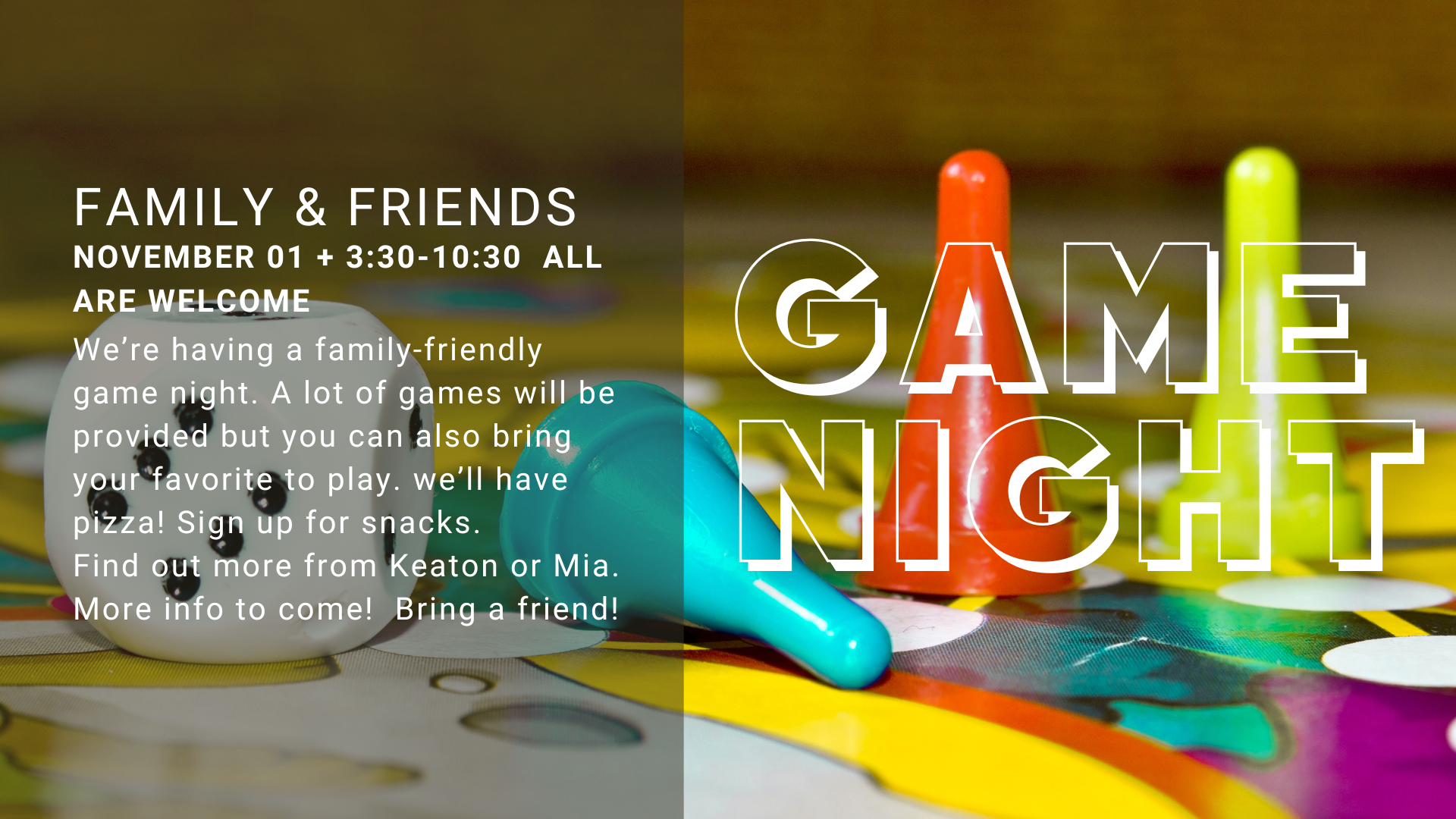 Plan to stay after service November 09th as we POTLUCK together. We’ll have a loaded baked potato bar for all to enjoy. A kid’s movie will be on for the younger kiddos who’d like to hang out in the Rootlet’s classroom.